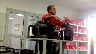 Максимальная мощность двигателя составляет 1.8 кВт, чего вполне хватит для работы перфоратора и параллельно подсоединенного шуруповерта, или для обогревателя до 1.5 кВт. Ее можно отрегулировать с помощью переключателя на корпусе: выставить на 100 % или на 50% от общей мощности. Это полезная функция, учитывая, что генератор довольно «прожорливый» на полной мощности — расход 1 л бензина за 1 час. Стоит отметить, что в модели AL-KO 2000 i 12-вольтовый выход выдает 8.3 А, что позволяет заряжать автомобильный аккумулятор гораздо быстрее, чем аналогичными моделями других фирм, где выход для зарядки аккумулятора выдает не более 6 А. Также плавный запуск устройства осуществляется одним единственным рычагом — не нужно открывать/закрывать заслонку для подсоса топлива.
