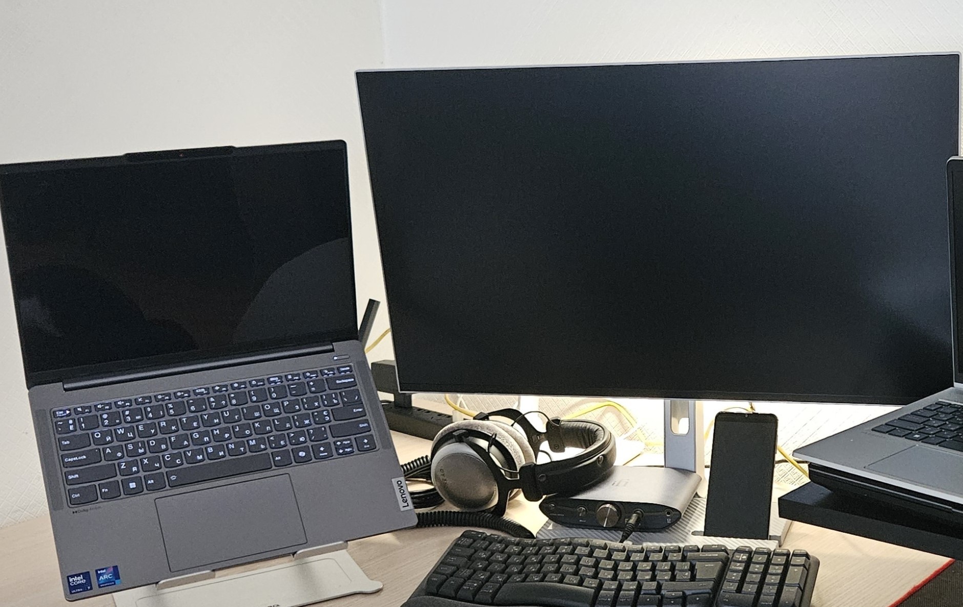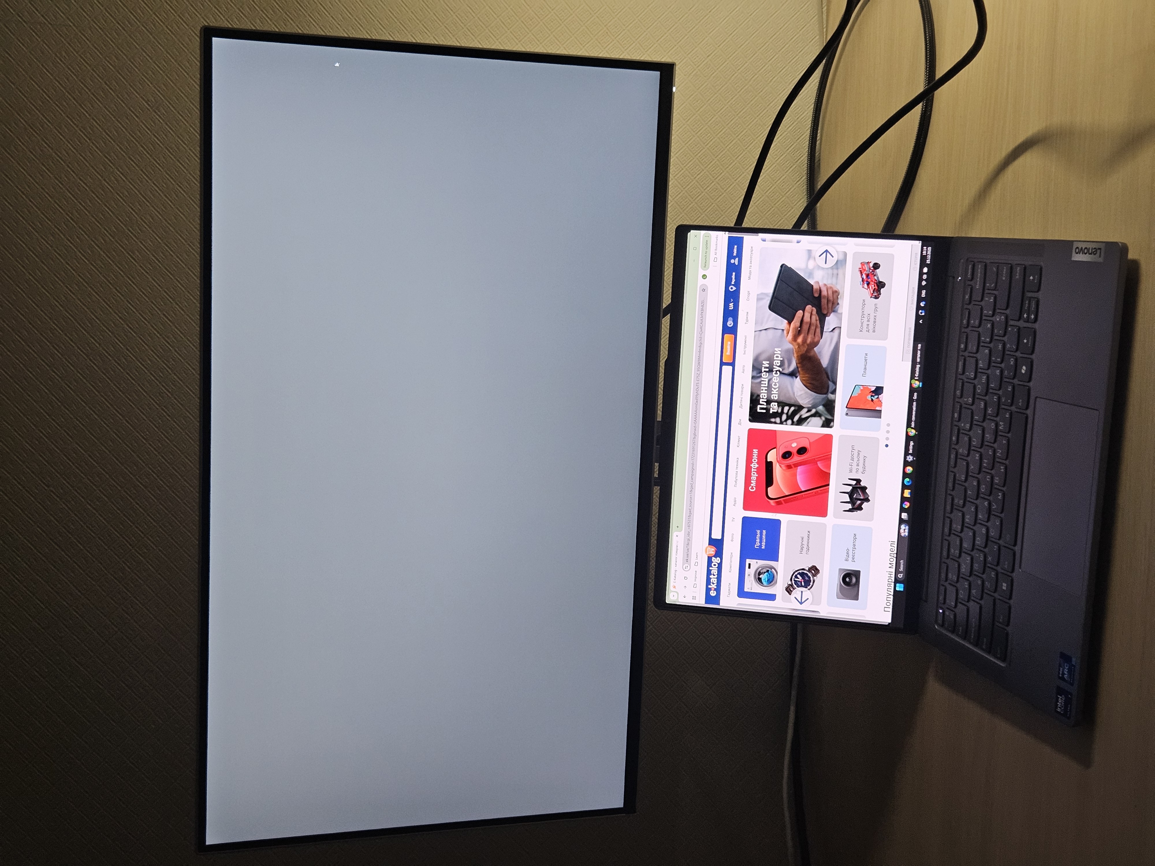 Крута фіча, що Type-C вхід спрацьовує для передачі картинки і одночасно дає USB-хаб, підключаю клаву+мишку.