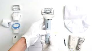 Эпилятор Panasonic отличается высокой стоимостью, которая оправдана его расширенными возможностями и разнообразной комплектацией. В комплект входят 7 насадок, позволяющих выполнять различные задачи и ухаживать за всем телом. Для эпиляции предусмотрены основная головка с массажными роликами для снижения дискомфорта и насадка с уменьшенной рабочей зоной для точечного удаления волос на деликатных участках (зона бикини, подмышки, лицо). Бритье осуществляется насадкой 2-в-1 — сеточной бритвой с выдвижным триммером, который срезает волоски под корень. Также в комплектацию входят гребень для подравнивания волос в зоне бикини и накладка для деликатной эпиляции.