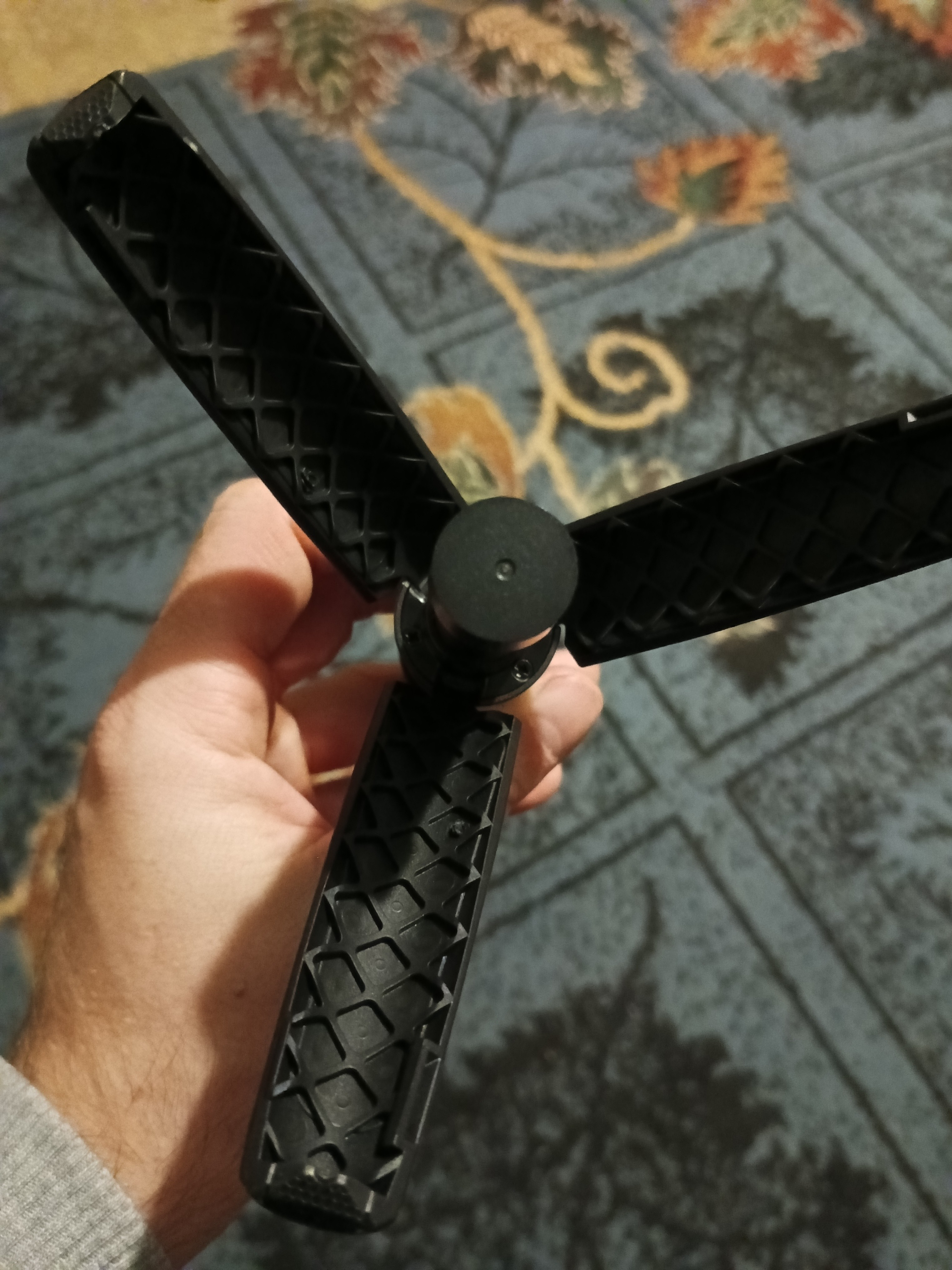 З першого погляду та дотику штативчик справив враження якісної речі. Все крутиться в висувається з невеличким зусиллям. Ніжки у складеному стані застібуються між собою на защьолки. Якість на висоті Не впевнений у фіксуючих застібках, як довго вони не зносяться |