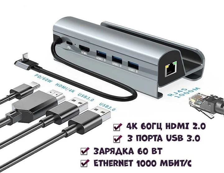 Док-станція 4K 60ГЦ 6в1 для Steam Deck|Macbook|iPad|Android (HDMI/ Gigabit Ethernet/ 3хUSB 3.0/ USB-C) 2 650 грн. Маркетплейс: Rozetka.ua Moby С нами 6 лет (Киев)ПожаловатьсяКупить!