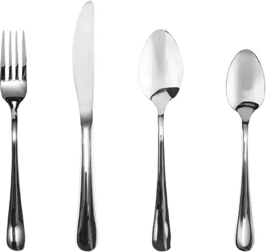 Матеріал Набір столових приборів ARDESTO Gemini Loreto виготовлено з нержавіючої сталі. Комплектація До набору входять 24 предмети, кожен з яких має продумані пропорції: столові ножі (6 шт., сталь 13/ ще→0, 84 г, 226 мм), виделки (42 г, 2,5 мм, 204 мм), столові ложки (46 г, 2,5 мм, 203 мм) та чайні ложки (по 6 шт., сталь 18/0, 19 г, 2 мм, 143 мм). Дзеркальне полірування Дзеркальне полірування надає елегантного блиску сервіруванню. Догляд Можливість миття в посудомийній машині забезпечує зручність догляду.