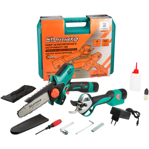 Sturmax SCM2161C-SETКількість предметів/біт в комплекті/2|Бренд/Sturmax|Гарантійний термін/Ні|Інструменти в наборі/2 акумулятора, Аксесуари, Зарядний пристрій, Кейс для зберігання, Пила ланцюгова, Пильний ланцюг, Пильна шина, Секатор|Особливості/Набір універсального застосування 5 449 грн.COMFY.uaС нами более 10-ти лет (Киев)ПожаловатьсяКупить!