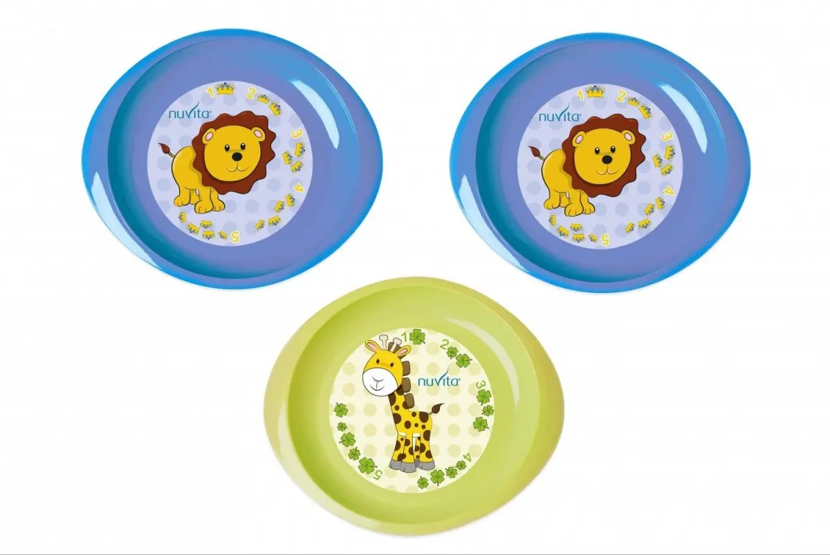 Детские тарелки также отличаются от взрослых размерами. Кроме того, они изготавливаются из прочного небьющегося материала, так как ребенок часто переворачивает посуду во время приема пищи. Интересное решение — тарелки с резиновым дном. Оно не дает посуде скользить по столу, при этом ребенок может передвинуть тарелку, приложив небольшое количество усилий. Некоторые изделия разделены на секции, чтобы можно было одновременно накладывать, но не смешивать различные блюда.