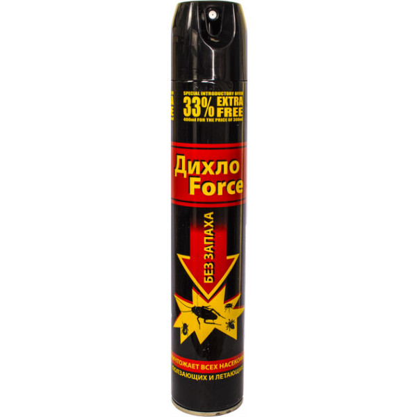 Force ДихлоForceот 66 грн.Сравнить цены4→ДихлоForce — ефективний, універсальний інсектицидний засіб в аерозольній упаковці побутового призначення проти всіх відомих видів комах. Без запаху.