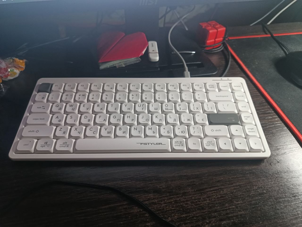 Чудова ножнична клавіатура, набагато зручніша за бюджетний попередній варіант (від RZTK), вагомими недоліками є відсутність підсвітки та відсутність num блоку (завдяки чому займає мало місця), також чомусь менш як за місяць користування почала стиратись клавіша (як видно на фото), гадаю через значну експлуатацію, але все ж таки... Ножнична, компактна, красива, неймовірно комфортна у використанні Відсутність num-блоку та підсвітки, почала менш як за місяць користування стиратись клавіша |