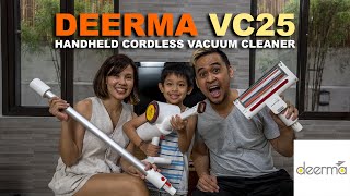 Акумуляторна модель пилососа вертикального компонування з пилозбірником системи циклон на рукояті. Його ємність заявлена в об'ємі 0.7 л сміття. Контейнер легко знімається і очищається після кожного використання. 150-ватний двигун пилососа з подвійною крильчаткою здатний працювати в двох режимах всмоктування. Перемикання між ними здійснюється кнопкою на торці корпусу. Багатоступенева система фільтрації на борту Xiaomi Deerma VC25 не пропускає пил назад у повітря.