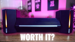 Стильна та універсальна настільна комп'ютерна акустична система середньої потужності формату 2.1, що включає пару двосмугових сателітів і один сабвуфер. Окрім вбудованого підсилювача звукової частоти потужністю 20 Вт, ця акустична система обладнана керованою динамічною RGB LED-підсвіткою, інтегрованим модулем інтерфейсу Bluetooth 5.0, аналоговим входом AUX IN, цифровим входом USB з підтримкою OTG та оптичним входом miniToslink.