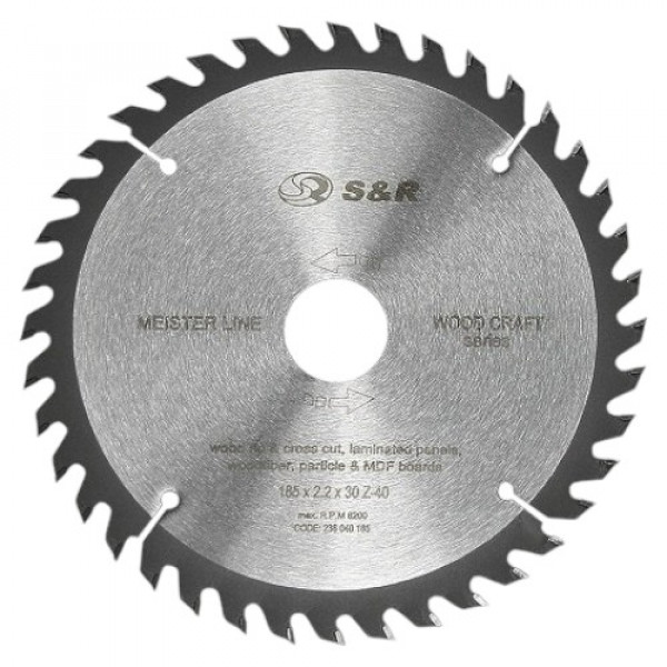 Посадка/30 мм|Кількість предметів/біт в комплекті/1|Бренд/S&R|Призначення/Дерево|Комплектація/Один предмет|Товщина/2,2 мм|Діаметр/180 мм