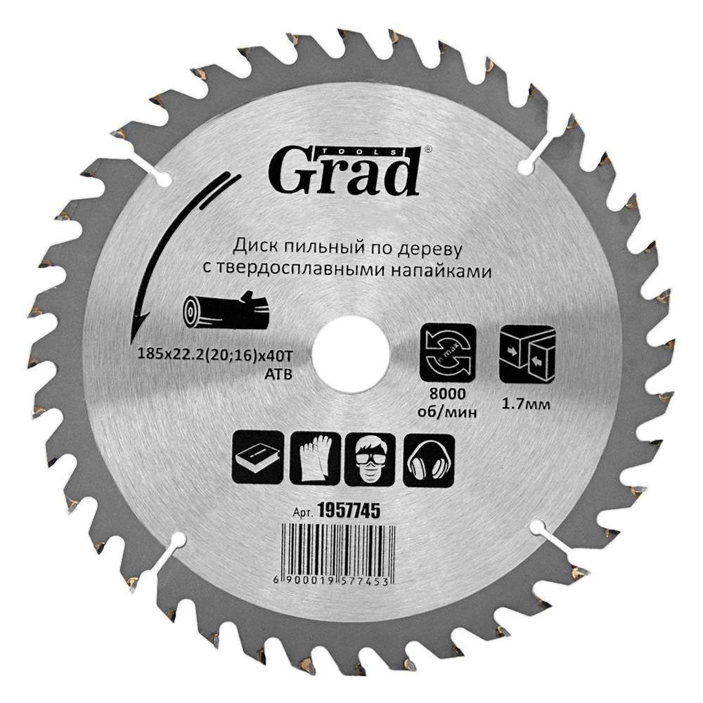 Колір: Хром; Виробник: Grad; Призначення: Для дерева; Кількість зубів: 40; Країна виробника: Китай; Діаметр зовнішній: 185; Діаметр посадочний: 22.2