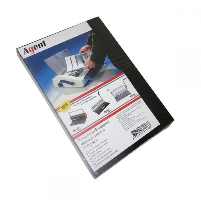 | Обкладинка прозора Agent А4 формату для палітурки - пластик PVC товщиною 180 мк, тонований. Прозора обкладинка використовується як лицьова сторона брошури, проспекту, меню, презентації і т.д., що переплітається, для можливості перегляду через прозору поверхню титульного листа, при цьому, забезпечуючи його захист від механічних пошкоджень.