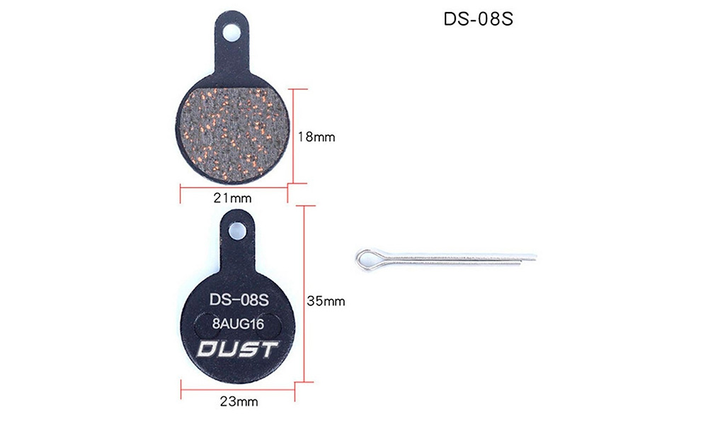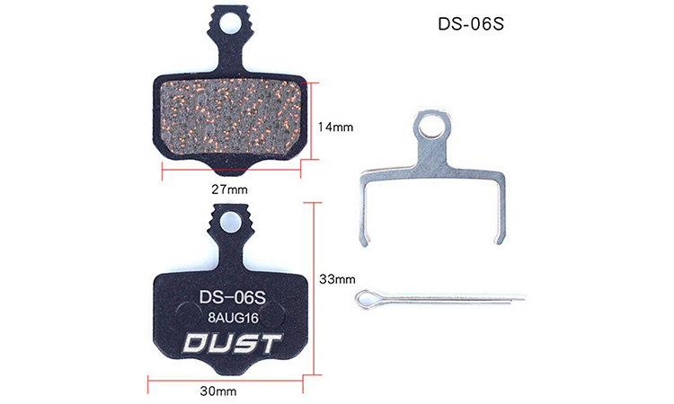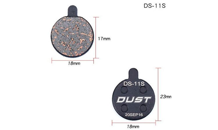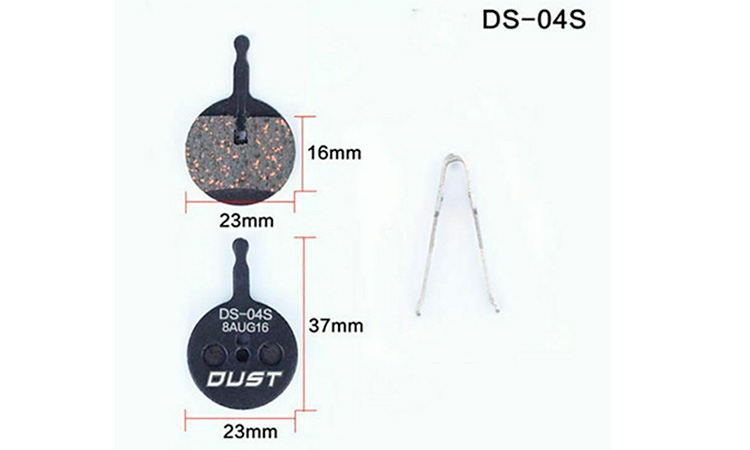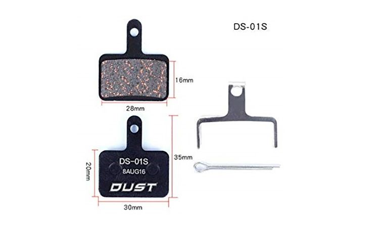Колодки гальмові DUST DS-01S для дискових велосипедних гальм. Матеріал гальмівної поверхні: напівметал (semi metal pads) Сумісність: Shimano MT-200, SHIMANO Deore M575, M515, M495, M486, M485, M475, M466, M465, M447, M446, M445, M416, M415, M395 і C65, Auriga , Gemini, Orion, Dorado і HDC, TRP Hylex, HYRD та Spyre RST D-power, Giant MPH Root та інші.