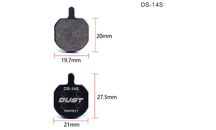 Колодки гальмові DUST DS-14S для дискових велосипедних гальм. Матеріал гальмівної поверхні: напівметал (semi metal pads) Сумісність: Hayes Sole hydraulic、MX2、MX3、MX4、GX2、CX5、Bengal HELIX3、HELIX5 та ін.