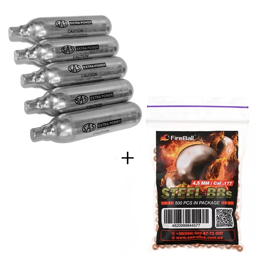Набір Балон CO2 SAS 12g, 10 шт + Сталеві кульки Fireball 500 шт/уп (зіп-пакет) 337 грн.One-click.com.uaЗ нами 4 роки (Дніпро)ПоскаржитисьКупити!