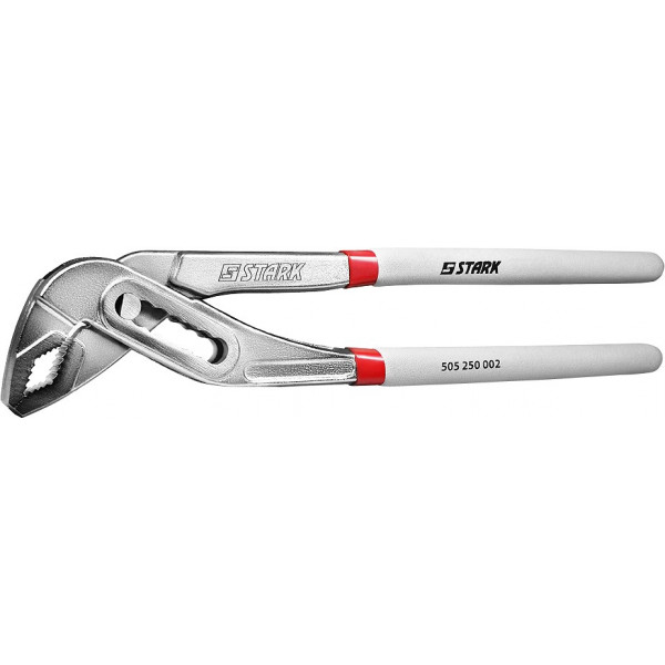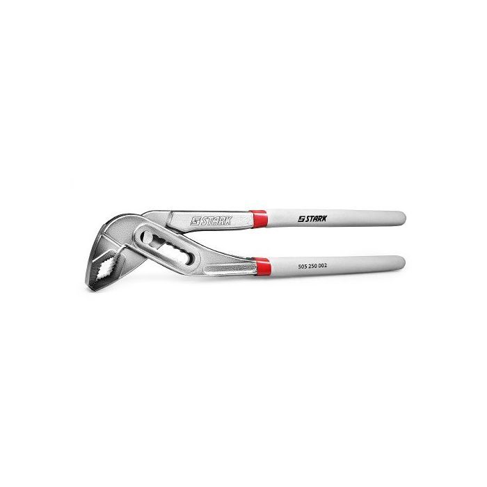 Stark Кліщі 250 мм пазові 505250001 (505250001)Кліщі Stark 250 мм - переставні кліщі з пазовим механізмом забезпечують надійне захоплення деталей, труб та інших предметів. Використовуються в сантехнічних і ремонтних роботах. Завдяки пазовому механізму губки надійно фіксуються під потрібний діаметр для захоплення. Робоча частина кліщів виготовлена ??з кованої сталі, що гарантує міцність і зносостійкість інструменту. Губки мають загартовані зубці для міцного затиску деталі, а також коррозиестойкие завдяки нікельованими покриттю. Широкі губки надійно охоплюють деталь діаметром до 40 мм. Зручні довгі рукоятки добре лягають в руках, а гумове покриття не дає ковзати інструменту в процесі роботи.Ціна від 235 грн.Порівняти ціни та купити Stark Кліщі 250 мм пазові 505250001 (505250001)Click.ua (Київ) →235 грн.FOXTROT.UA (Київ) →235 грн.MTA.ua (Київ) →269 грн.Comtrading.ua (Київ) →235 грн.Sota.store (Київ) →235 грн.Порівняти ціни5→