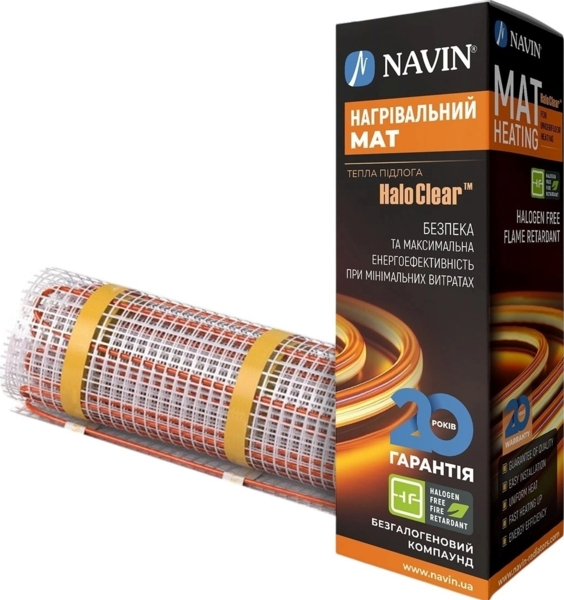 Мат нагрівальний Navin HaloClear 190/175 (41-001009-0175) 41-001009-0175Нагрівальний мат Navin HaloClear 190/175 двожильний призначений для систем теплої підлоги під плитковий клей або тонку стяжку. Загальна потужність становить 175 Вт, розмір 0,5 × 1,8 м, що відповідає площі обігріву 0,9 м². Питома потужність 190 Вт/м² забезпечує швидкий вихід на робочу температуру. Ізоляція FEP (тефлон) та зовнішня безгалогенна оболонка HFFR гарантують безпеку та стійкість до механічних навантажень. Холодний кінець 3 м з перетином 3×1 мм² полегшує підключення до терморегулятора.Описание товара Мат нагрівальний Navin HaloClear 190/175 двожильний для систем опалення 0.9м кв, 0.5х1.8м 175Вт 230ВОсобливості Нагрівальний мат HaloClear 190/175 складається з тонкого двожильного кабелю,… 2 790 грн.Moyo.uaЗ нами більше 10-ти років (Київ)ПоскаржитисьКупити!