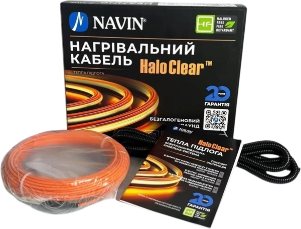Кабель нагрівальний Navin HaloClear 18/175 (40-000010-0175) 40-000010-0175Нагрівальний кабель Navin HaloClear 18/175 двожильний призначений для систем теплої підлоги під стяжку або плитковий клей. Загальна потужність становить 175 Вт, довжина 9,7 м, що дозволяє обігрівати площу 0,9–1,2 м². Потужність на метр 18 Вт/м дає змогу регулювати крок укладання залежно від необхідної щільності тепла. Ізоляція FEP (тефлон) та зовнішня безгалогенна оболонка HFFR забезпечують безпеку й довговічність. Холодний кінець 3 м з перетином 3×1 мм² спрощує підключення до терморегулятора.Описание товара Кабель нагрівальний Navin HaloClear 18/175 двожильний для систем опалення 1.2м кв, 9.7м 175Вт 230ВОсобливості Нагрівальний кабель HaloClear 18/175 двожильний виконує функцію основного або… 1 690 грн.Moyo.uaЗ нами більше 10-ти років (Київ)ПоскаржитисьКупити!